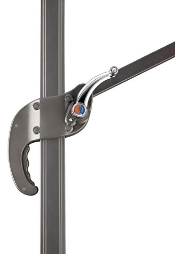 Mit Drehteller unter Zuhilfenahme von Fußpedal um 360° drehbar, entlang des Mastes neigbar