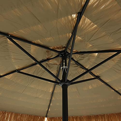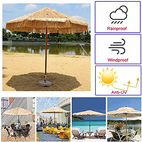 【Outdoor-Freizeit-Sonnenschirm】 Es wird von künstlichem Stroh, Polyestertuch und achtsträngigem Schirmrahmen unterstützt, der belastbar, gefestigt und langlebig ist und eine erhebliche winddichte Wirkung hat. Verlängern Sie die Lebensdauer des Sonnenschirms.