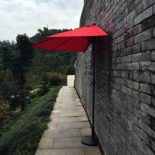 SDdPulse Halb-Terrassenschirm aus Stahl, mit Kurbelmechanismus, roter Balkonschirm, Outdoor-Sonnenschirm für Gartenterrasse, 2,7 m