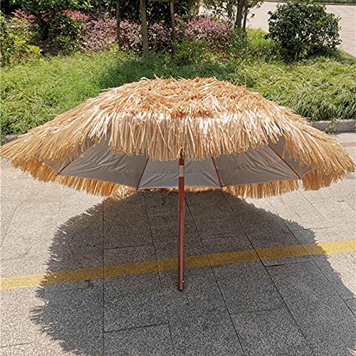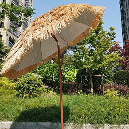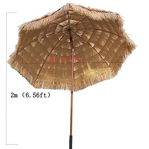 SDdPulse Runder Outdoor-Sonnenschirm, 2 m, neigbarer Strohschirm, tropischer hawaiianischer Strohschirm, einfach zu installieren und zu tragen, natürliche Farbe, ohne Sockel