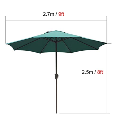 SDdPulse Terrassenschirme, grün, für den Außenbereich, 270 cm, rund, Garten-Sonnenschirm mit Kurbel und stabilen Rippen, für Hinterhof, Schwimmbad, Deck, Strand