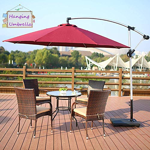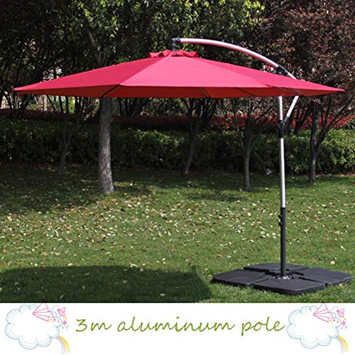 SEESEE.U 3M Sonnenschirm Sonnenschirm im Freien Sonnenschirm, freitragender Verstellbarer Bananenversatz hängender Regenschirm Wasserdichter Schutzgarten (rot) Hinterhof Pool Deck Bar