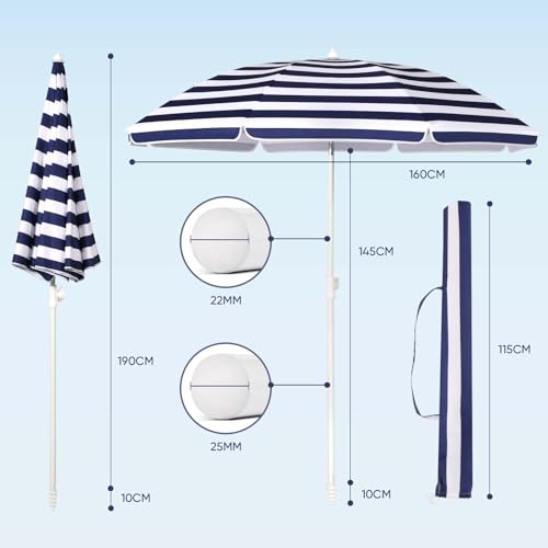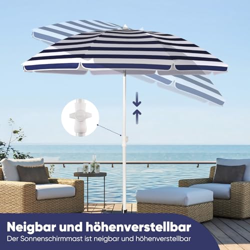 Neigungswinkel und Höhe einstellbar: Dank der robusten Lust und des Drehknopfes können Sie die Position des Sonnenschirms einfach eichen. So können Sie sich von morgens bis abends immer im Schatten entspannen!