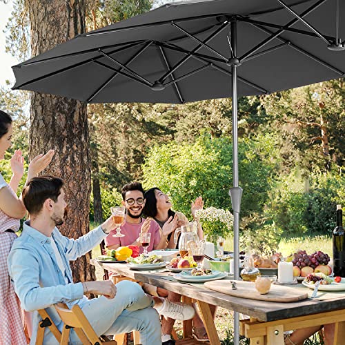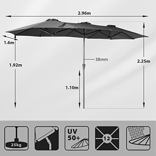 Sekey® 160 × 300 cm Doppelsonnenschirm mit kurbel| Groß Sonnenschirm Marktschirm für Terrasse,Balkon & Garten, Windfest Stabil UPF 50+,Grau