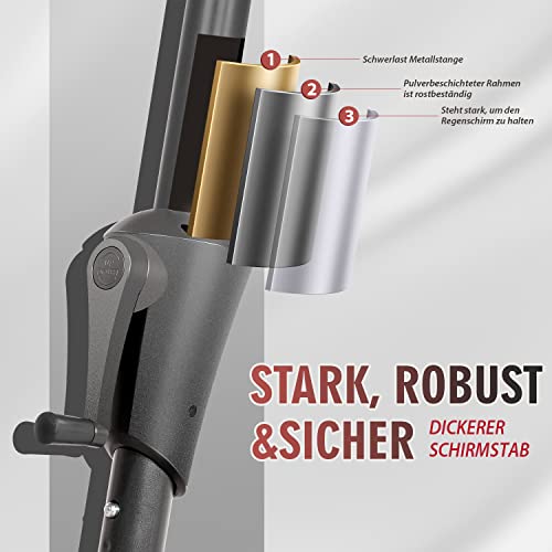 Einfaches Kurbelsystem – Das robuste Gerüst und die innovative Kurbeltechnologie ermöglichen eine mühelose Montage für den täglichen Gebrauch. Drücken, heben und kurbeln Sie den Schirm einfach in die gewünschte Position;