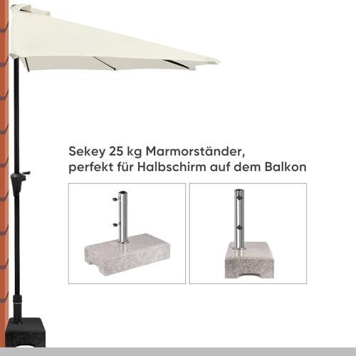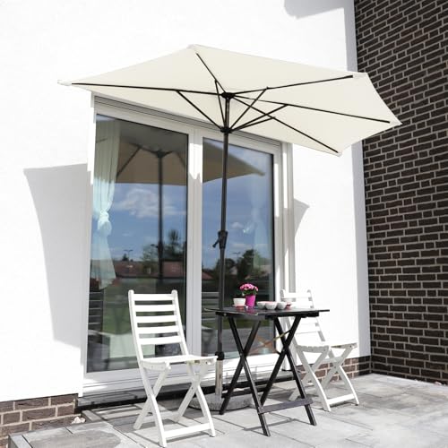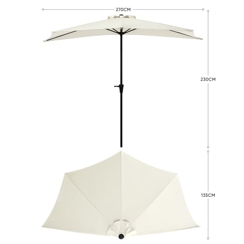 Sekey 2.7m halbrundschirm Sonnenschirm, Balkonschirm, Terrassen-Schirm mit Kurbel und Klettbandverschluss für Garten, Terrassen, Höfe, Schwimmbäder, 100% Polyester (Creme), UV 50+
