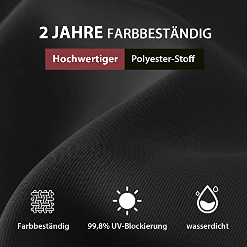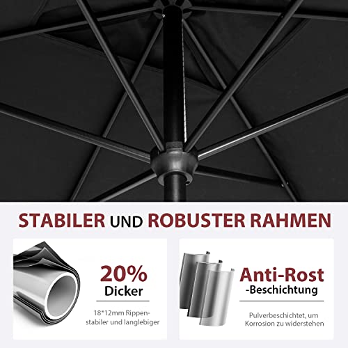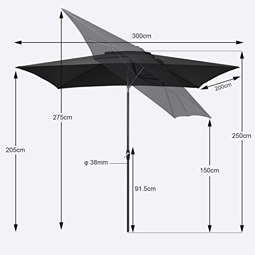 Abmessungen & Material – Größe: 200×300 cm, Schirmhöhe: 250 cm, Stangendurchmesser: 38 mm. Schirmabdeckung jeglicher 100% Polyester; ca. 180 g / m²;