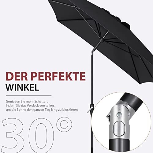Einfaches Kurbelsystem – Das robuste Gerüst und die innovative Kurbeltechnologie ermöglichen eine mühelose Montage zugunsten den täglichen Gebrauch. Drücken, heben und kurbeln Sie den Schirm einfach in die gewünschte Position;