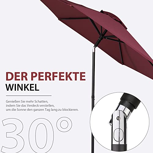 Sekey® 220cm Sonnenschirm | Terrassenschirm für Terrasse,Garten,Windfest Kippbar Rot UPF 50+ Rund