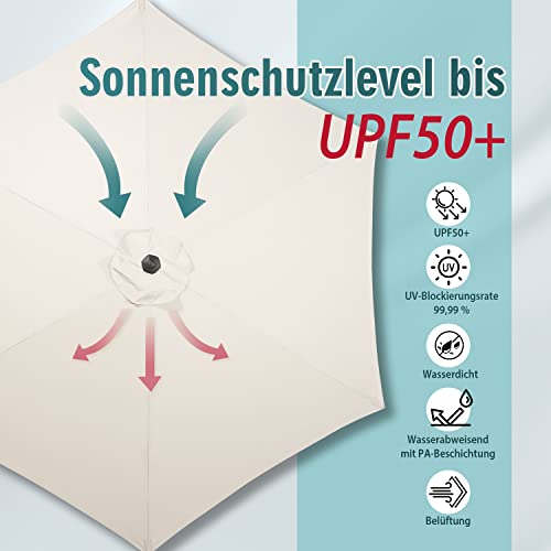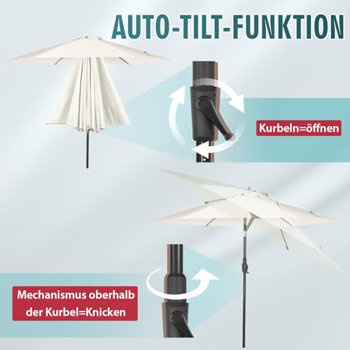 Sekey 270cm Sonnenschirm mit Kurbel und Auto Kippen,Marktschirm für Terrasse,Balkon & Garten,Windfest Stabil UPF 50+,Graubeige,Rund