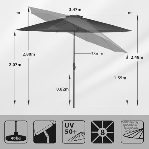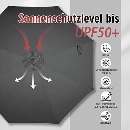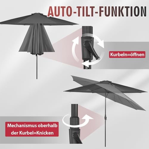 Sekey 350cm Sonnenschirm mit Kurbel und Auto Kippen,Marktschirm für Terrasse,Balkon & Garten,Windfest Stabil UPF 50+,Grau,Rund