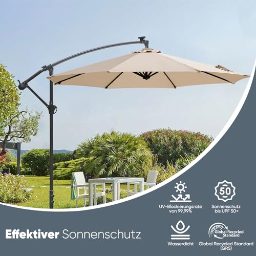 300 cm Aluminium-Ampelschirm, mit Kurbelbedienung. Ideal für Garten oder Terrasse.