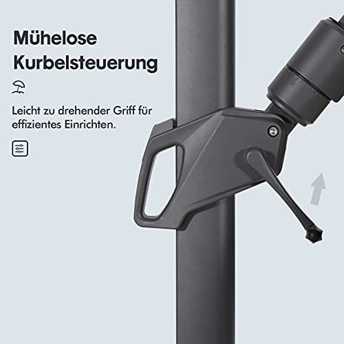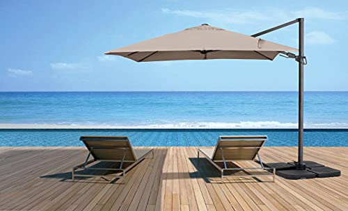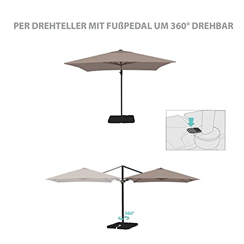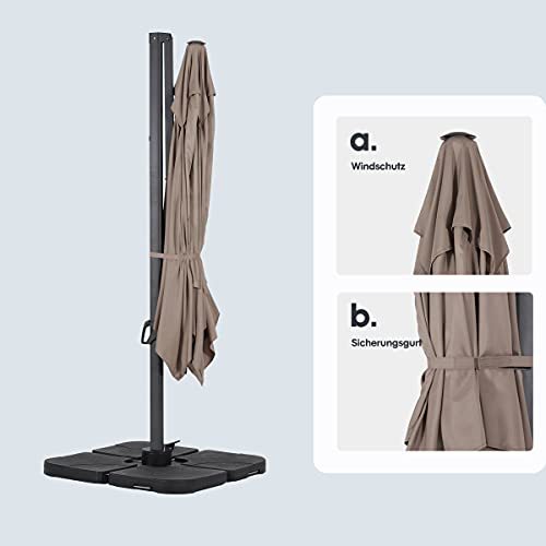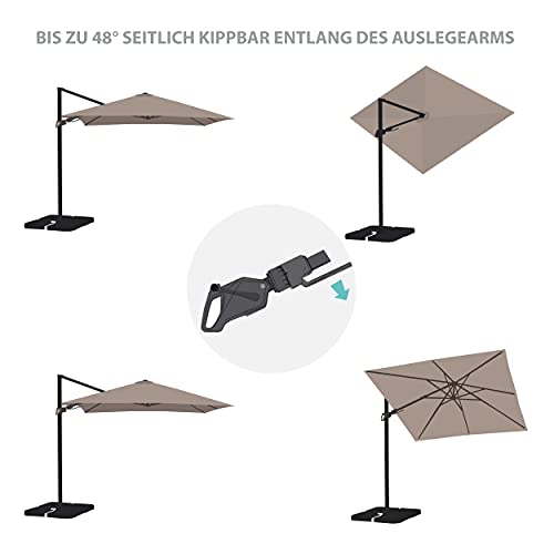Sekey® Ampelschirm XL 275 x 275 cm Sonnenschirm Gartenschirm Kurbelschirm Drehbar Neigbar Kippbar Marktschirm Groß 360° Rotation Sonnenschutz UPF50+,Quadratisch,Taupe