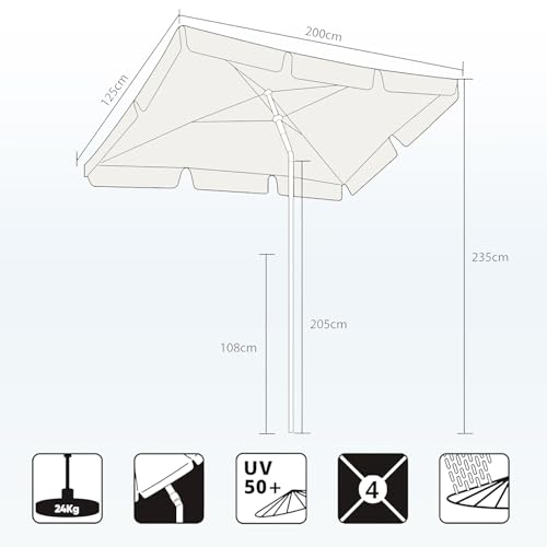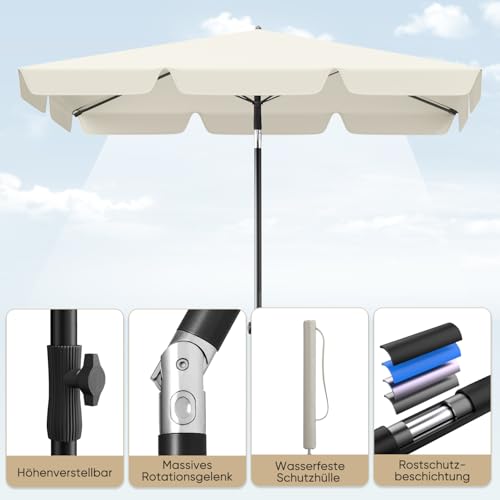 SONNENSCHIRM FÜR BALKON-Enthält: 200×125 cm Rechteckschirm (Schirmhöhe 235cm, 32 mm Stahlstange) + wasserfeste Schutzhülle.Schirmbezug alle 100% polyester; etwa 180g/㎡.