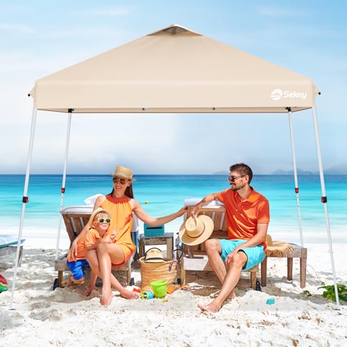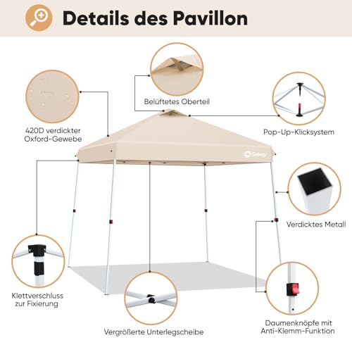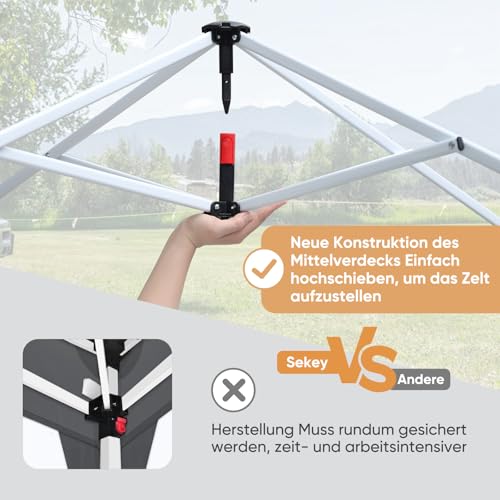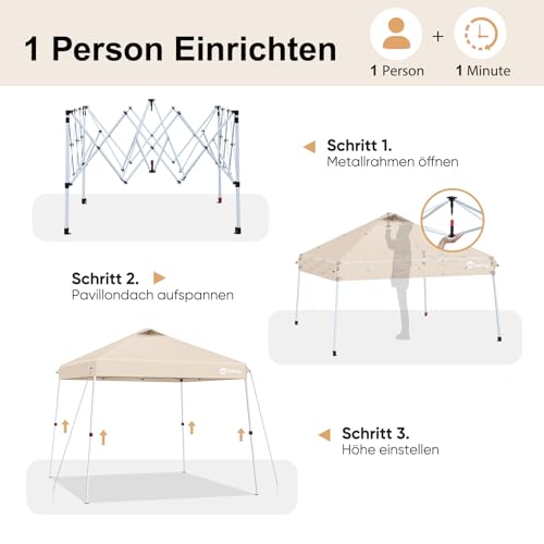 Sekey One Touch Pop Up Pavillon 3×3 Wasserdicht & Winterfest, Schrägbein-Design für Maximale Stabilität, EIN-Personen-Aufbau Faltpavillon Partyzelt inkl. 4 Sandsäcke, Khaki