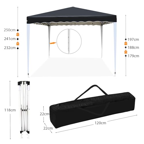 【Einfacher Auf- und Zerfall】Kann von 1 oder 2 Personen in wenigen Minuten leicht auf- und abgebaut werden, kein Werkzeug erforderlich, Anleitung im Paket enthalten oder Installationsvideo auf der Website ansehen, einfache dreifache Höhenanpassung, bis zu 6-8 Personen plötzlich im Pavillon