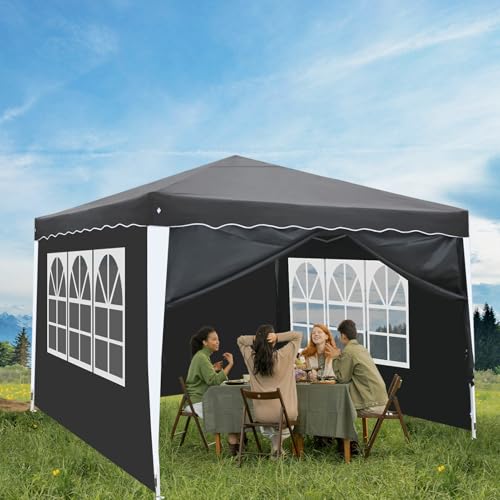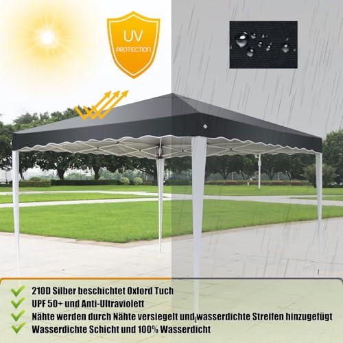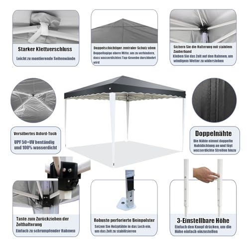 ShieldWall Pavillon 3×3 Wasserdicht Stabil Winterfest Pavillon faltbar, Faltpavillon 3×3 mit 4 Seitenteilen, Verbessertes Doppelt versiegeltes Gewebe 100% Wasserdicht UV55+ Europäischer Wellenstil