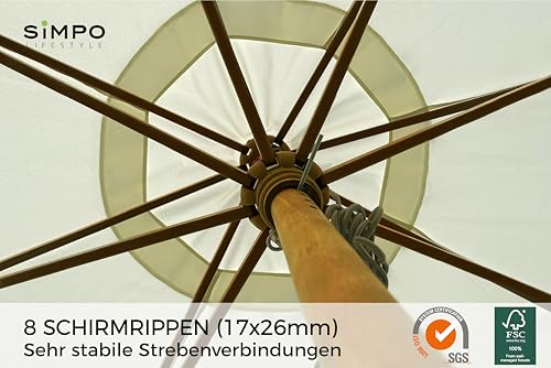 HOCHWERTIGE POLYESTERFASERN: Dieser Sonnenschirm besteht aus 235 g/m2 Polyesterfasern mit UPF 50+, die über 98 % der UV-Strahlen verrammeln. Und dieser Sonnenschirm schützt Sie nicht dessen ungeachtet vor UV-Strahlen, sondern aka vor Regen.