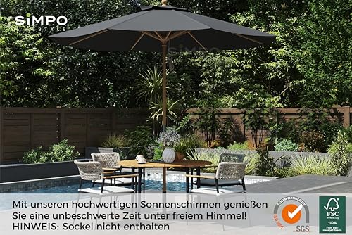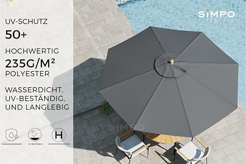 OUTDOOR BENUTZUNG: Mit seinem großen Durchmesser von 3 m bietet dieser Sonnenschirm ein breites Spektrum an Schatten und eignet sich besonders für große Esstische, Terrassen, Gärten oder am Pool. Er bietet effektiven Abschirmung vor starker Sonneneinstrahlung und bringt eine gemütliche Atmosphäre in den Außenbereich.