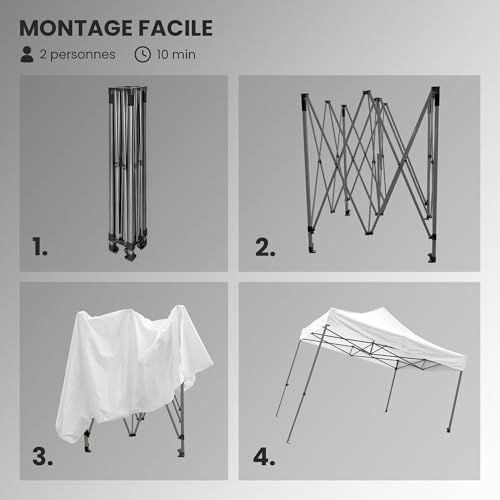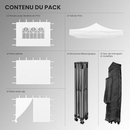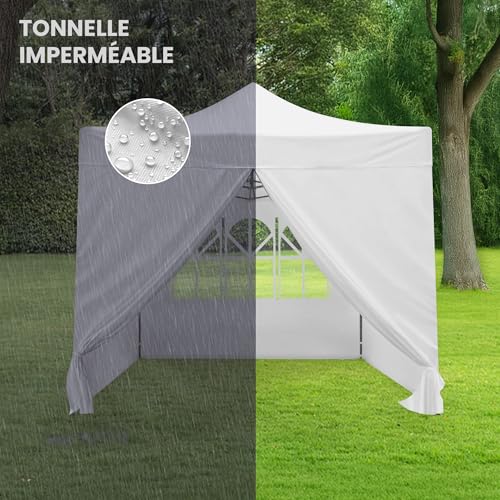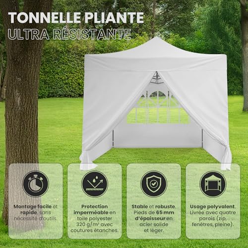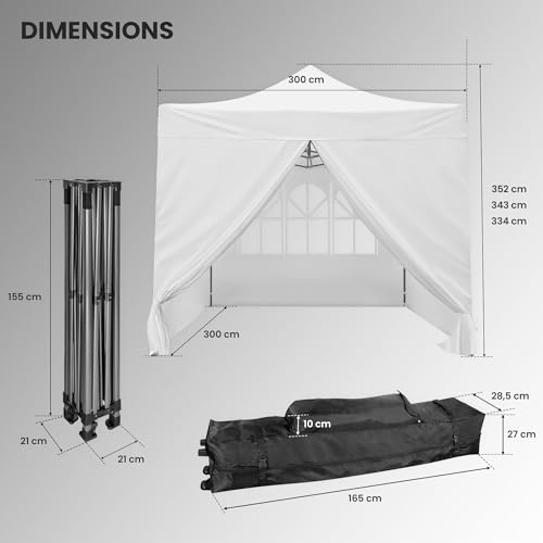 Skyland Garten-Pavillon faltbar 3 x 3 m 520D (320 g/m²) + 4 weiße Wände – Pavillon Barnum faltbar und mit 4 Wänden aus Leinwand – Pagozelt, faltbar, wasserdicht, ideal für Empfang im Freien