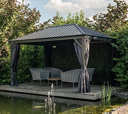 WARTUNGSFREI: Das Pavillon überzeugt mit seiner stabilität und schützt vor schädlichen UV-Strahlen. Die Materialien sind wetterfest – Die perfekte Terrassenüberdachung.