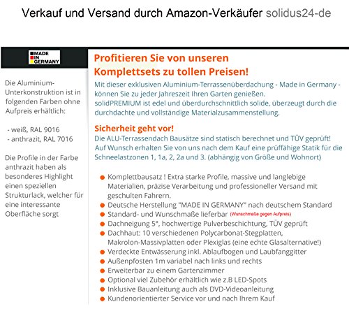 Design Aluminium Terrassenüberdachung + 16mm PC-Stegplatten + Zubehör / MADE IN GERMANY!