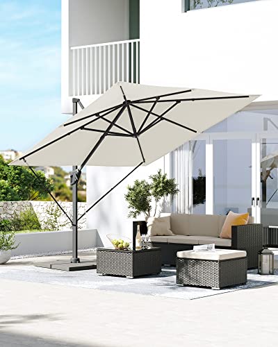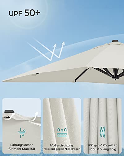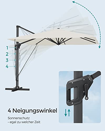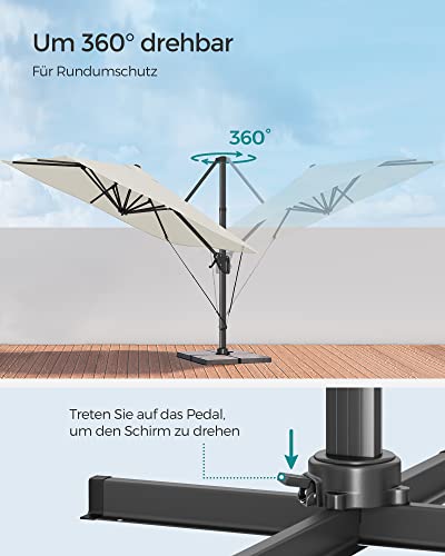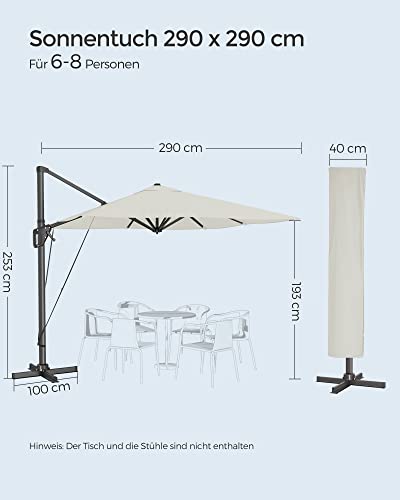 SONGMICS Sonnenschirm 290 x 290 cm, Ampelschirm, Gartenschirm, UV-Schutz UPF 50+, um 360° drehbar, Neigungswinkel verstellbar, mit Ständer, Befestigungsgurten und Abdeckung, beige GPU039M01