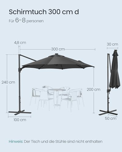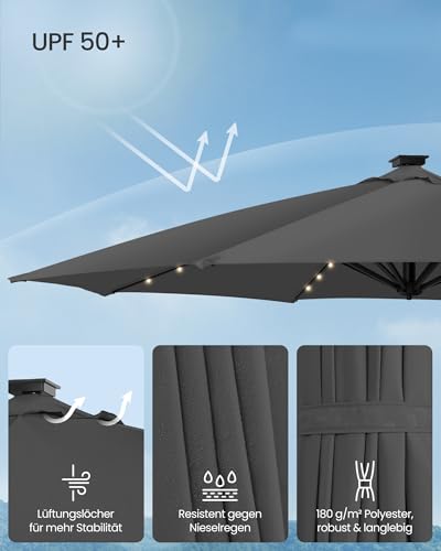 [Großer Schatten] Drehen Sie einfach die Kurbel, um diesen 300 cm d Sonnenschirm mittels Beleuchtung zu anbrechen. So beziehen Sie eine private Oase, die erhebend Platz an Stelle 6-8 Personen bietet – perfekt an Stelle unvergessliches Beisammensein im Freien