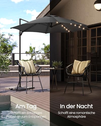 [Genießen Sie Abende im Freien] Sonnen Sie sich in den bezaubernden Strahlen dieses versetzten Sonnenschirms mittels 28 solarbetriebenen LED-Lichtern! Ihr warmes Licht wird Ihren Abenden im Freien auf Knopfdruck eine magische, romantische Stimmung geben