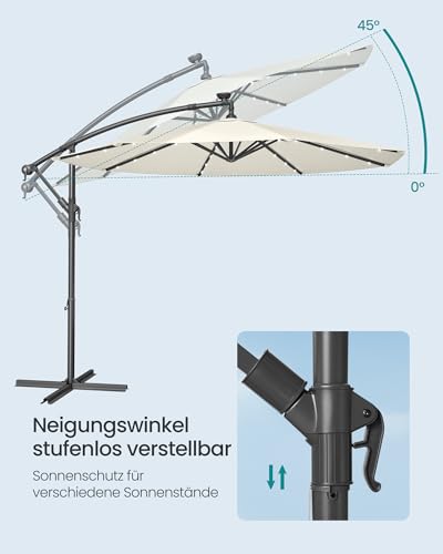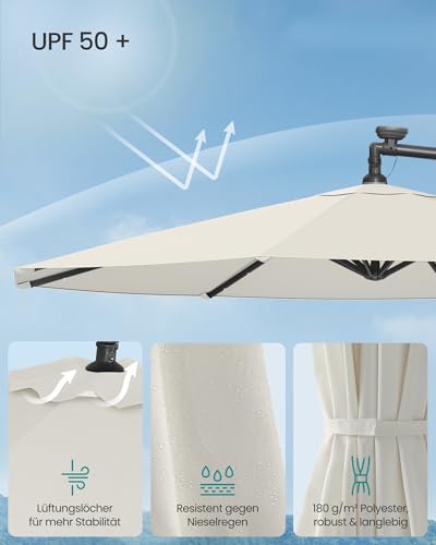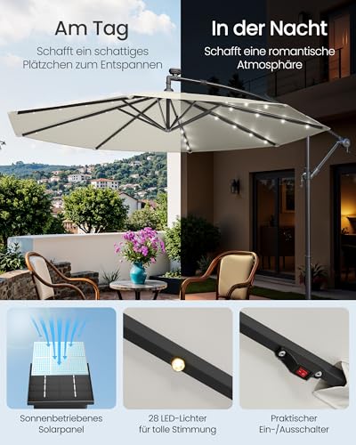 [Viel Spaß im Freien – auch bei Nacht] Der Ampelschirm ist mit 32 LED-Lämpchen ausgestattet, und leuchtet etwa 6 Stunden lang, weil Sie ihn tagsüber ausreichend mit Sonnenlicht versorgt haben, um nachts eine romantische Ambiance im Freien zu arbeiten