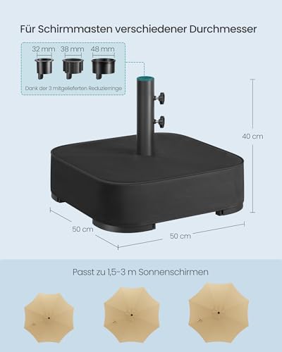 【FÜR VERSCHIEDENE SONNENSCHIRME GEEIGNET】Aufgrund der 3 mitgelieferten Reduzierringe passt der Sonnenschirmständer zu Schirmmasten verschiedener Durchmesser (32 mm, 38 mm oder 48 mm). Wichtiger Signal: Nicht angemessen stattdessen Ampelschirme