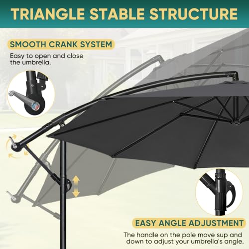 Der Sonnenschirm mit Handkurbel lässt sich mühelos öffnen und ableiten, und der Sonnenschirm drehbar sorgt für flexible Schattenanpassung. Ideal für den Sonnenschirm für Garten und die Terrasse.>