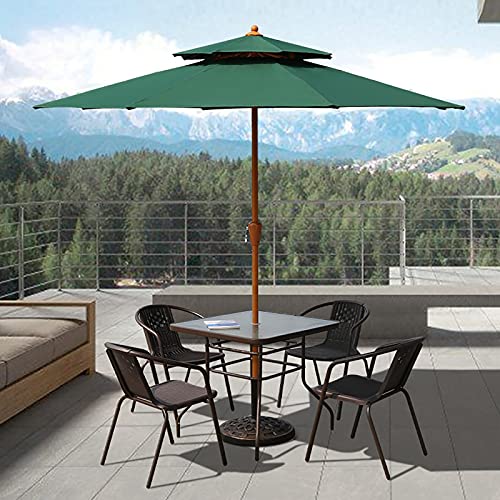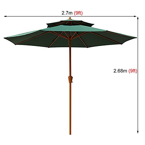 Sonnenschirm 9ft Garten Schatten Sonnenschirm Sonnenschirm, Rasen Pool Hinterhof Außenterrasse Doppel Top Regenschirm mit Holzimitat-Metallstange (Color : Green)