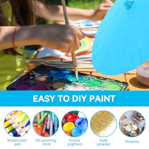 Sonnenschirm Aus Reispapier, Asiatischer Sonnenschirm, Blau Papierschirm, Chinesischer Schirm 40cm Durchmesser DIY-Malerei Dekorativer Schirm Handbemalt, Sonnenschirm Für Hochzeiten Dekoration