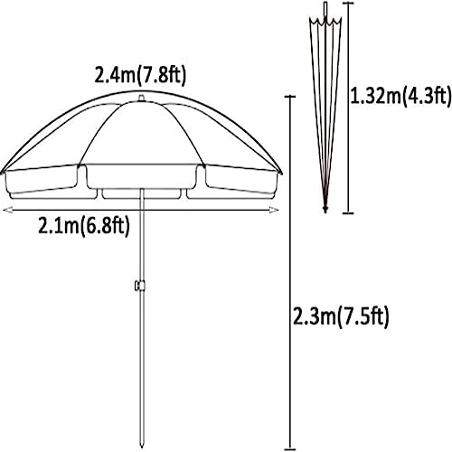 【Außenschirm】Höhe: 2,4 m (7,8 Fuß), Schirmbogenlänge 2,4 m (7,8 Fuß), Breite unter dem Schirm: 2,1 m (6,8 Fuß), Höhe kann je nach Bedarf frei aufeinander abgestimmt werden