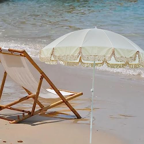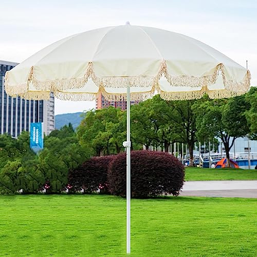 Luxuriöse Strandschirme, Strand- und Terrassenschirm, Outdoor-Sonnenschutz mit beigefarbenen Quasten für Garten, Strand, Hof, Terrasse, Camping, Balkon im Freien