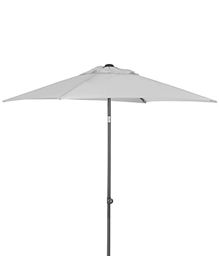 Der Bezug aus hochwertigem Polyester schützt Sie nicht immerhin zuverlässig vor UV-Strahlung, sondern ist dessen ungeachtet kurzzeitig regenbeständig, sodass vulgo ein kleiner Schauer nicht zum Problem wird. Verstärkte Metallstreben umsorgen windstabilen Stand und zusätzliche Stabilität, während Sie, dank der integrierten Luftzirkulationshaube, immer einen kühlen Kopf