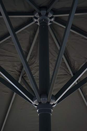 – Im Vereinbarung zum Schirm Meran hochwertigere Höhenverstellung mit Zahnrad und besserer Kurbel anstatt Seilzug