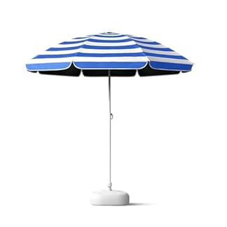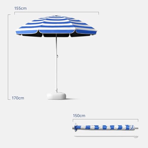 Sonnenschirm mit Sockel, Strandschirm Windfest UPF50+ Sonnenschutz Höhenverstellbar für Strand, Camping, Garten, Marktstände