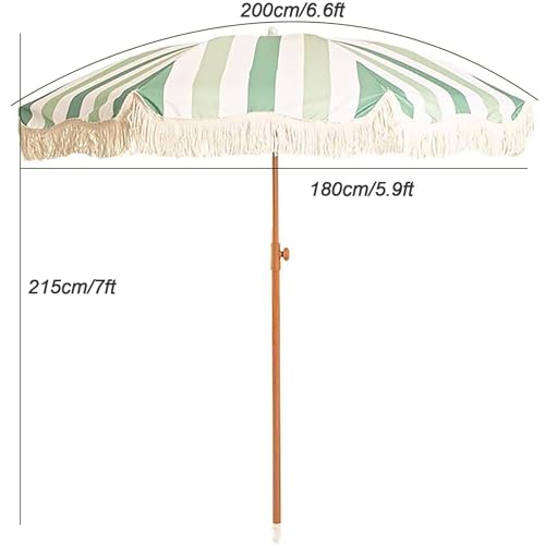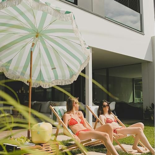 Outdoor-Schirm im Bohème-Stil anhand Quasten, grün-weiß gestreift, lässige Mode, Sonnenschirm zugunsten den Urlaub am Meer