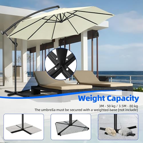 Robust & langlebig: Der Aluminiumrahmen (⌀ 48-53,2 mm) ist rostfrei, wetterfest und bleibt dabei leicht. Seitenschlag verstärkte Streben und eine tragfähige Basis (50 kg bei 3m / 80 kg bei 3,5m) garantieren Stabilität selbst bei Wind. Die Montage ist einfach: Die Fußplatte kann festgeschraubt werden (Sandgewichte versperrt erhältlich).
