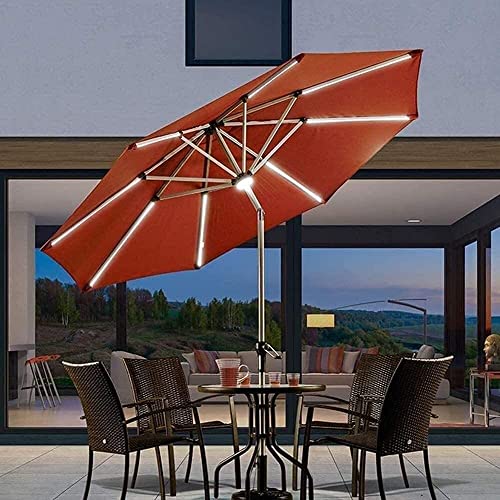 Solarbetriebene Lichter: Von Sonnenschein bis Sternenlicht, Licht wird von einem Solarpanel oben auf der Stange betrieben, um Energie zu sparen, mit einem Schalter, mit dem Sie steuern können, wann Sie das Licht ein- oder ausmachen möchten. Dieser Terrassenschirm verfügt über Druckknopf zum Neigen/Kurbeln. Hinweis: Die Basis ist in diesem Werk enthalten.