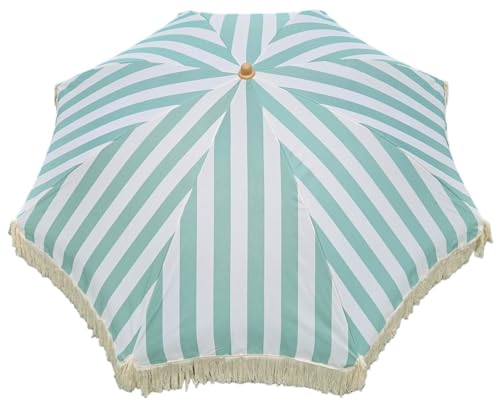 Sonnenschirm Strandschirm Schirm TÜRKIS weiß gesteift mit Fransen UV Schutz Ø 180 cm