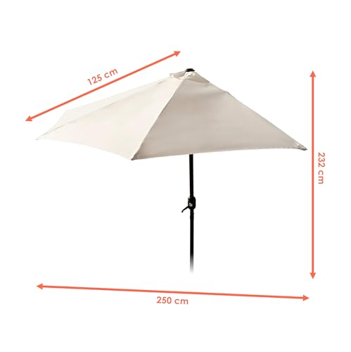 Spetebo Sonnenschirm 250 cm mit Kurbel halbrund – Farbe wählbar – Halbschirm mit 5 Rippen wasserabweisend – Wandschirm Balkonschirm Terrassenschirm Sonnenschutz Schirm raumsparend