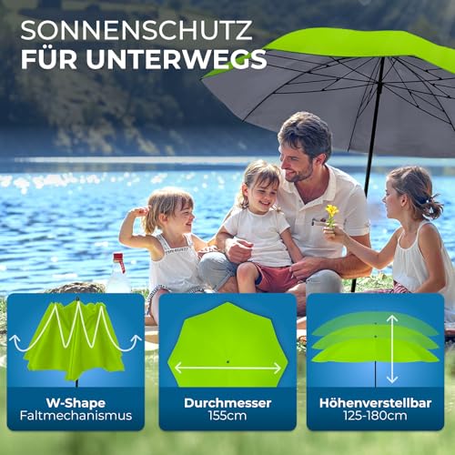 🥇 MAXIMALER SCHATTEN ÜBERALL – Mittels 155 cm Durchmesser weiterhin Höhenverstellbarkeit von 125 cm bis 180 cm, bietet unser Sonnenschirm flexiblen Sonnenschutz, wo aka immerdar Du Schatten brauchst!