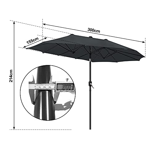 【Doppelsonnenschirm】Farbe: Dunkelgrau. Gesamtmaße: 453x263x235cm(Lx Bx H). Gewicht: 12, 76 kg. Bezugsmaterial: 100 % Polyester. Lenkbar oder nicht: Nein. Dieser einfache und praktische Terrassenschirm ist der ideale Begleiter für den Sommer.