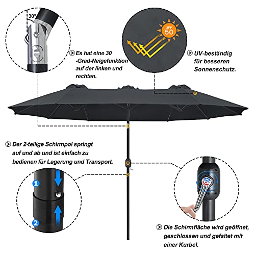 √ Einstellbarer Neigungswinkel des Gartenschirms je nach Sonneneinstrahlung.