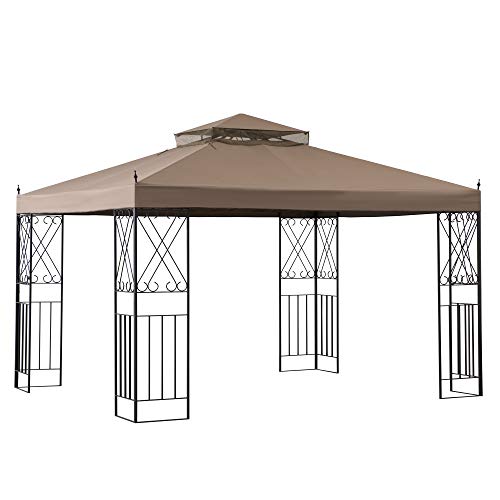 3×3.5m pavilion with weatherproof fabric canopy in khaki color
