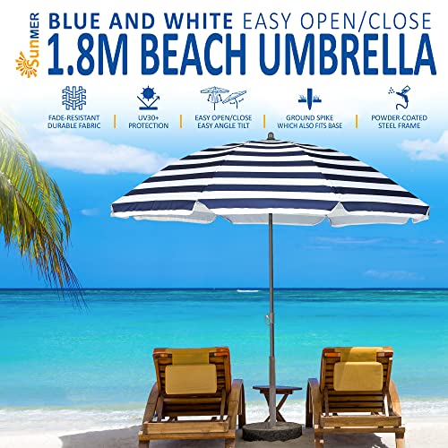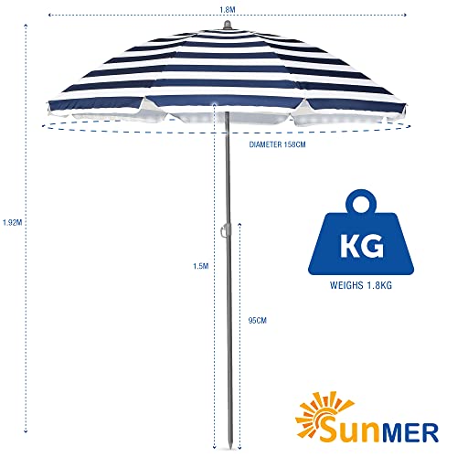 SUNMER 1.8M PARASOL: Dieser SUNMER 1.8M Hacke-Weiß Sonnenschirm ist die ideale Ablösung, um die Sommersonne auszublenden. Es ist leicht zu öffnen und zu induzieren und verfügt über einen Kippmechanismus, mit dem Sie den Winkel des Baldachins anpassen können. Dieser Sonnenschirm ist ideal für Gärten, Terrassen, Hinterhöfe, Poolseiten und mehr.