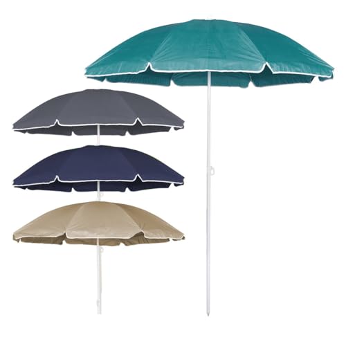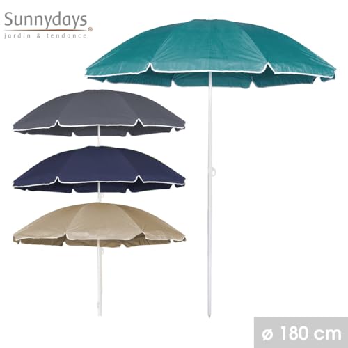 Der Sunnydays Strand- /Sonnenschirm ist der ideale Begleiter für sonnige Tage am Strand oder beim Camping. Mit einem Durchmesser von 180 cm und einer Gesamthöhe von 195 cm bietet er großzügigen Abschirmung vor der Sonne. Das stabile, beschichtete Metallgestell in elegantem Weiß sorgt für Konstanz und Stabilität.